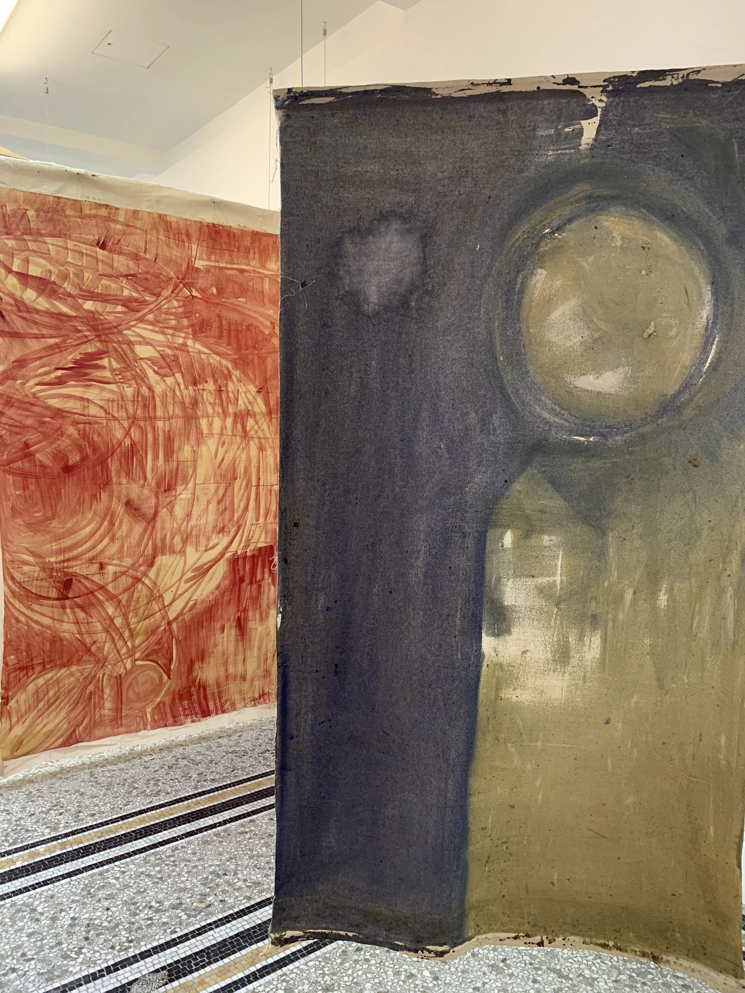 Οι ζωγραφικές αυτές εγκαταστάσεις –που είχαμε την τύχη να θαυμάσουμε και στην Αθήνα κατά τη διάρκεια της Documenta 14– έχουν μια πρωτοφανή οργανικότητα που δεν οφείλεται σε συγκεκριμένα μοτίβα ή βιομορφικά σχέδια. Μοιάζει σαν οι καμβάδες της να είχαν αφεθεί στην ύπαιθρο περιμένοντας το χρόνο να μιλήσει μέσα από αυτούς, σαν να προσκάλεσαν την ίδια τη φύση να συντάξει πάνω τους το ποίημα της. Είναι προϊόντα του τυχαίου και του βιωματικού όχι μόνο στην πραγματοποίηση αλλά και στην εγκατάσταση. Η καλλιτέχνης περιγράφει ότι τοποθετεί τον πρώτο καμβά στον χώρο και μετά προχωρά αυτοσχεδιαστικά με τους υπόλοιπους. Αντιμετωπίζει την καλλιτεχνική της πρακτική ως κάτι το ιδιοσυγκρασιακό, αφηρημένο, σωματικό και τελικά γλυπτικό, που την κάνει πρωτίστως να νοιώθει καλά. Την ευδαιμονία αυτή επιθυμεί στη συνέχεια να μεταβιβάσει και στο κοινό. Βασικός πρωταγωνιστής της δουλειάς της είναι το χρώμα –του ουρανού, της λάσπης, του γρασιδιού και των λουλουδιών– που «κουβαλάει» μέσα της. Μια ιδιότητα που αποδίδει στην Αργεντίνικη καταγωγή της.