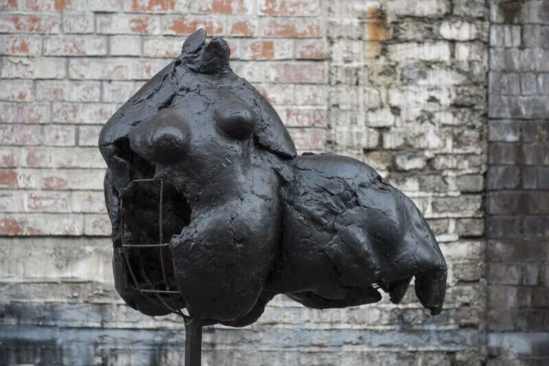 Kind or fearful the wounded semi-made deities, hybrids of Louise Bourgeois’ frantic feminine forms and Venus of Willendorf’s sensual shape, generate several allegories about the eternal woman’s struggle against her tender chaotic inside and a monolithic supressing and abusive outside.